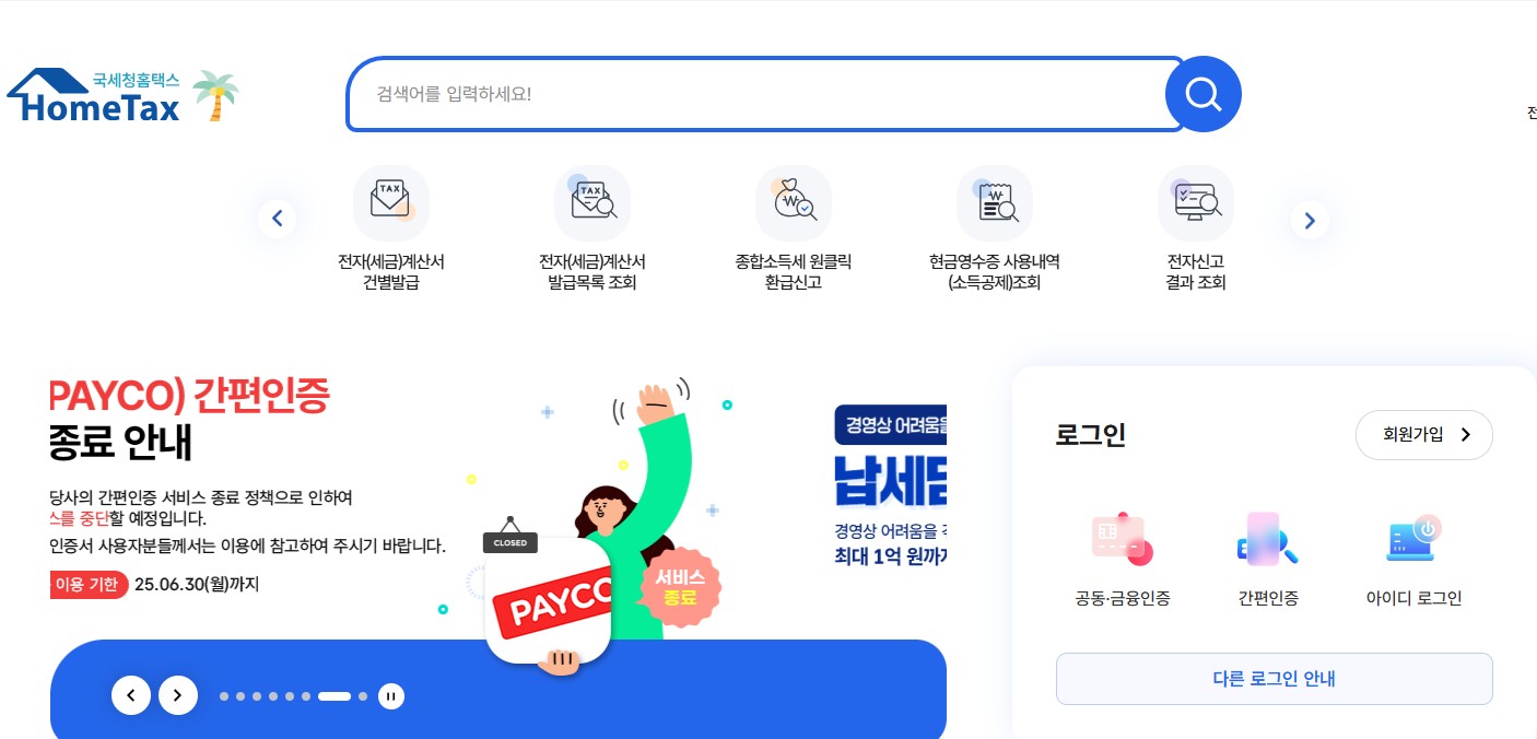 - 홈택스 접속 후 로그인