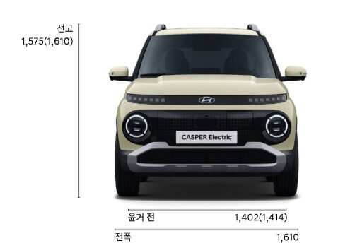 기존 캐스퍼의 귀여운 외형을 유지하면서도 EV만의 특성을 반영한 에어로다이내믹 범퍼, 하이그로시 휠 커버 등이 적용될 예정입니다. 전기차 특유의 밀폐형 그릴과 미래적인 LED 라이트 디자인은 친환경 전기차의 감성을 잘 살려줄 것으로 보입니다.
