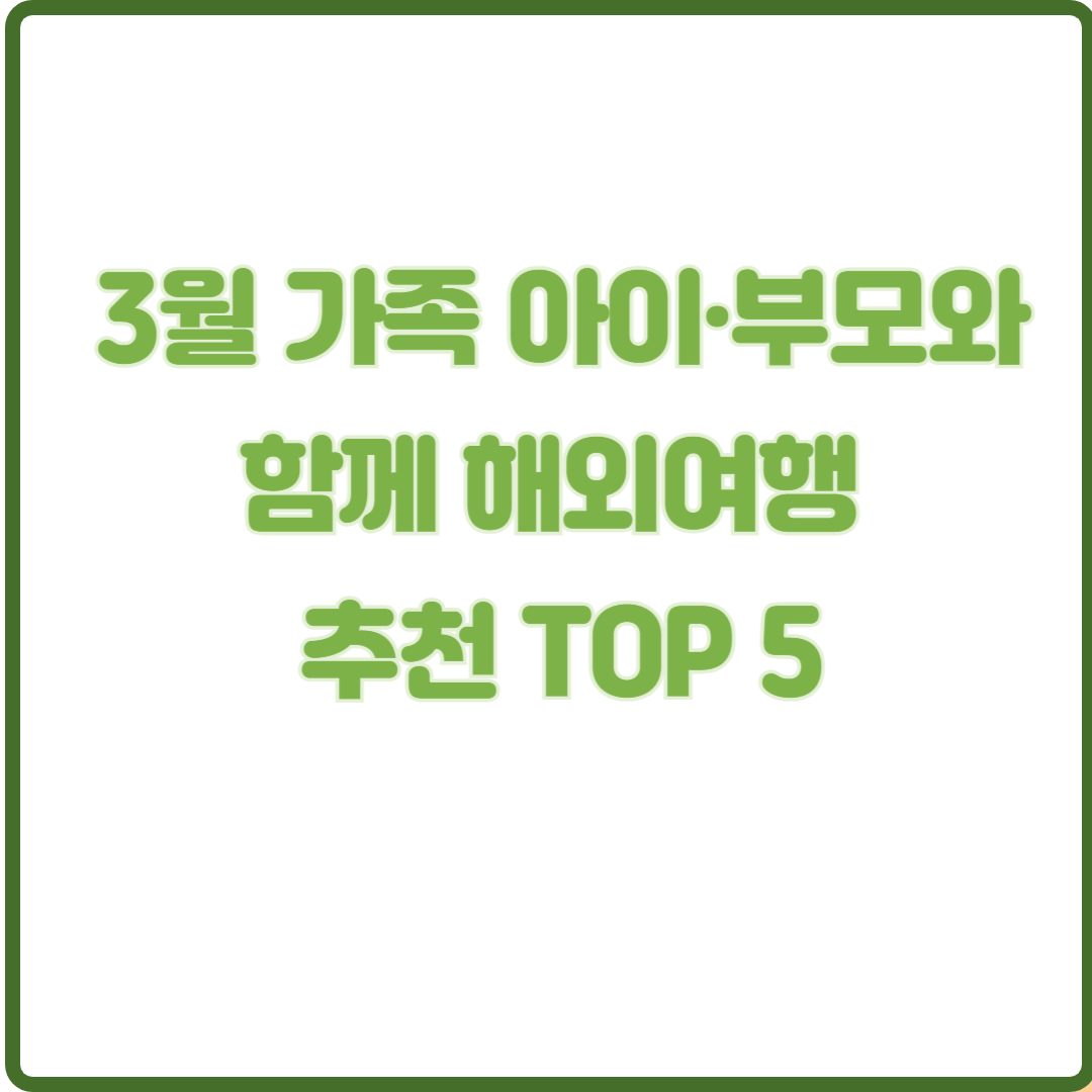 안녕하세요~ 3월은 성수기 전이라 비교적 여유로운 여행이 가능한 시기입니다. 따뜻한 날씨, 가족 친화적인 관광지, 편리한 이동 등을 고려해 아이부터 부모님까지 모두 만족할 수 있는 해외여행지를 추천합니다. 한 번 아래에 상세한 내용으로 정리해 보겠습니다. 일본 오사카 & 교토🔹 추천 이유: 짧은 비행시간(약 2시간), 맛있는 음식, 테마파크 & 전통문화 체험📍 추천 명소:유니버설 스튜디오 재팬(USJ) – 가족 단위 여행객에게 최고 인기도톤보리 & 난바 – 먹거리 천국 (타코야키, 오코노미야키)교토 후시미이나리 신사 & 아라시야마 대나무숲 – 일본 전통문화 체험🌡 3월 날씨: 평균 8~15℃ (가벼운 외투 필요) 태국 푸켓 🔹 추천 이유: 따뜻한 기후, 키즈 프렌들리 리조트 많음, 다양한 해..